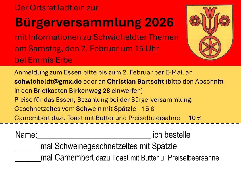Der Schwicheldter Ortsrat lädt alle Mitbürgerinnen und Mitbürger ein zur Bürgerversammlung zur Information und Diskussion über örtliche Themen.